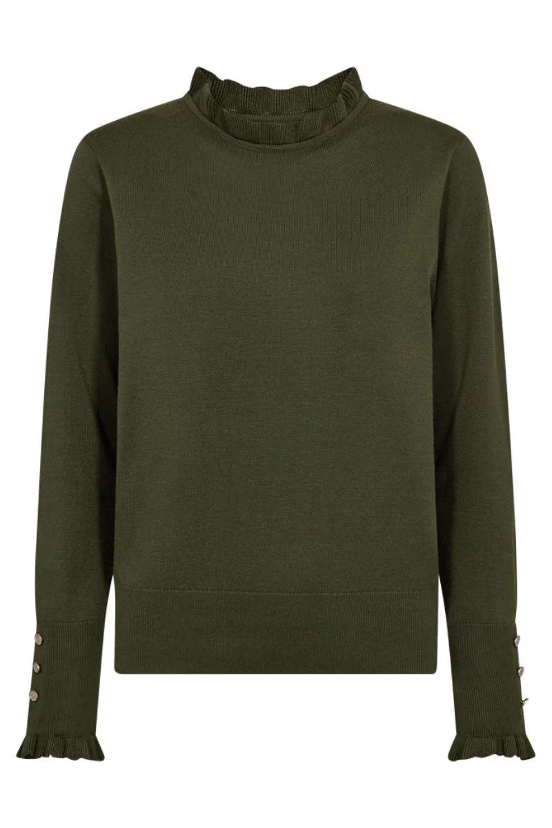 Pullover fra Freequent i en blød, finstrikket kvalitet. Pulloveren er enkel i modellen med ribkanter, en elegant, løs pasform, dekorative knapper med små similisten samt flæser i halsudskæringen og de lange ærmer.