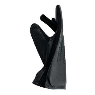 Lubin handske er med læder og strikket stof mellem fingrene.