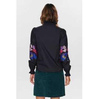 Skjorten har v-hals med smock og knaplukning. Alle knapperne har forskellige farver og er en klassisk detalje fra Nümph. Ærmet er ballon-ærme med det fineste broderi på. Skjorten er i 100% bomuld.